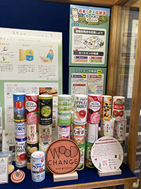 神奈川県横浜西合同庁舎にある、かながわトラストみどり財団の展示コーナーに、もりかみ協議会会員カートカン商品の展示をいただきました。